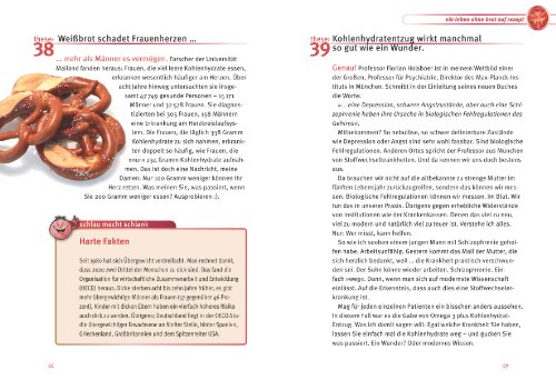 "Reichlich Getreideprodukte und Kartoffeln", empfiehlt die Deutsche Gesellschaft für Ernährung bis heute. Dabei steht längst fest, dass Kohlenhydrate durchaus unangenehme "Nebenwirkungen" haben. Auf den Punkt gebracht: Carbs machen dick, faul, krank und vorzeitig alt! Wer falsche Ernährungstipps und die endlose Diätenspirale endlich hinter sich lassen will, muss wissen, was wirklich Sache ist: Ein gesundes, den Bedürfnissen des Menschen entsprechendes Ernährungsprogramm enthält wenig bis gar keine Kohlenhydrate, dafür aber jede Menge Eiweiss, Obst und tatsächlich: Fett! Anhand von 100 überraschenden Thesen zum Thema "Kohlenhydrate" räumt Dr. med. Ulrich Strunz mit verbreiteten Irrtümern auf. Dazu gibt er praktikable Tipps für den Alltag: Tabellen für den Lebensmitteleinkauf, Speisepläne, Rezepte und Diätvorschläge. Das Diät- und Ernährungsbuch der anderen Art - unterhaltsam, anregend und motivierend! Für alle, die auf Dauer gesund, schlank und leistungsfähig sein wollen!