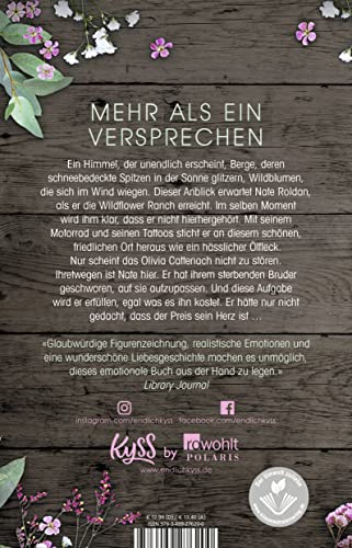Ein Himmel, der unendlich erscheint, Berge, deren schneebedeckte Spitzen in der Sonne glitzern, Wildblumen, die sich im Wind wiegen. Dieser Anblick erwartet Nate Roldan, als er die Wildflower Ranch erreicht. Im selben Moment wird ihm klar, dass er nicht hierhergehört. Mit seinem Motorrad und seinen Tattoos sticht er an diesem schönen, friedlichen Ort heraus wie ein hässlicher Ölfleck. Nur scheint das Olivia Cattenach nicht zu stören. Ihretwegen ist Nate hier. Er hat ihrem sterbenden Bruder geschworen, auf sie aufzupassen. Und diese Aufgabe wird er erfüllen, egal was es ihn kostet. Er hätte nur nicht gedacht, dass der Preis sein Herz ist …