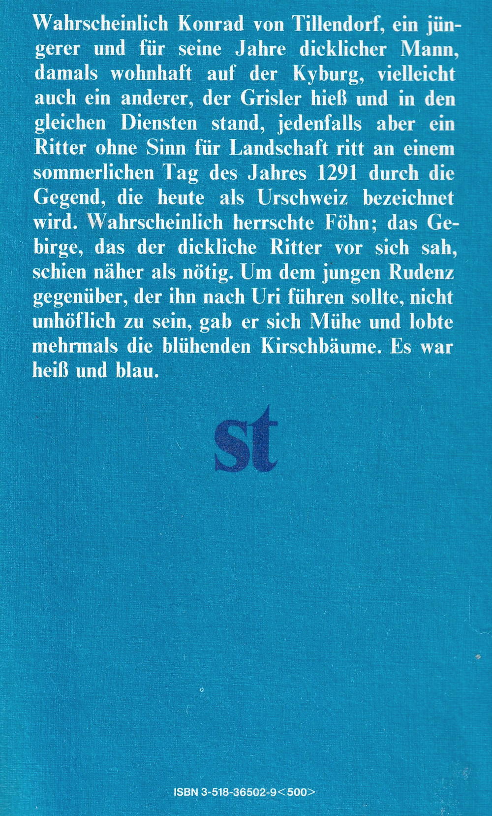 Die Tell-Sage zählt zu den berühmten nationalen Mythen. Seit Schiller gilt sie als klassischer Besitz von Triumph des Freiheitswillens über Unterdrückung. An den Schulen wird sie so weitergereicht. Gerade für die Schule erzählt Max Frisch die Tell-Geschichte neu. Seine Sprache ist lakonisch, seine Darstellung souverän, ja heiter. Ein nationaler Mythos wird demontiert: die Vorgänge von 1291 werden aus der Gegenwart gesehen und interpretiert.