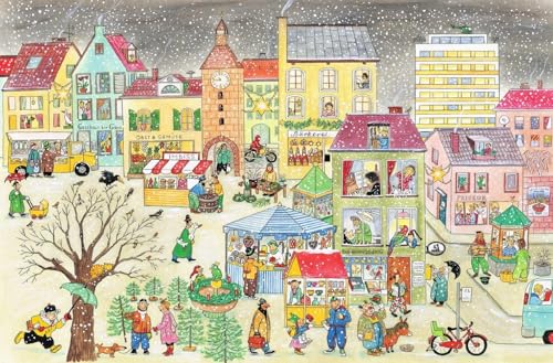 Was gibt es Schöneres für ein Kind, als bäuchlings auf dem Boden zu liegen, vor sich ein grosses Bilderbuch, in dem es hunderte von bekannten und unbekannten Dingen zu entdecken gibt? Rotraut Susanne Berner hat ein solches Buch geschaffen: ein stabiles Pappbilderbuch mit sieben grossformatigen Bildern, die ganz unterschiedliche Orte zeigen: ein Mehrfamilienhaus mit Garten, einen Bauernhof mit Feldern und Wiesen, einen Bahnhof, ein Museum, eine Baustelle, einen Marktplatz, ein mehrstöckiges Kaufhaus und einen Park. Jede Seite ist angefüllt mit unzähligen Gegenständen und überall tummeln sich Kinder und Erwachsene, fahren mit dem Bus, arbeiten auf der Baustelle, spielen im Kindergarten, füttern die Enten im Park. Und ganz nebenbei erzählt Rotraut Susanne Berner kleine Bildgeschichten, wie von der Frau, die immer wieder den Bus verpasst oder von der Jagd nach dem entflogenen Papagei. Empfohlen für Kinder von 2 bis 6 Jahren.