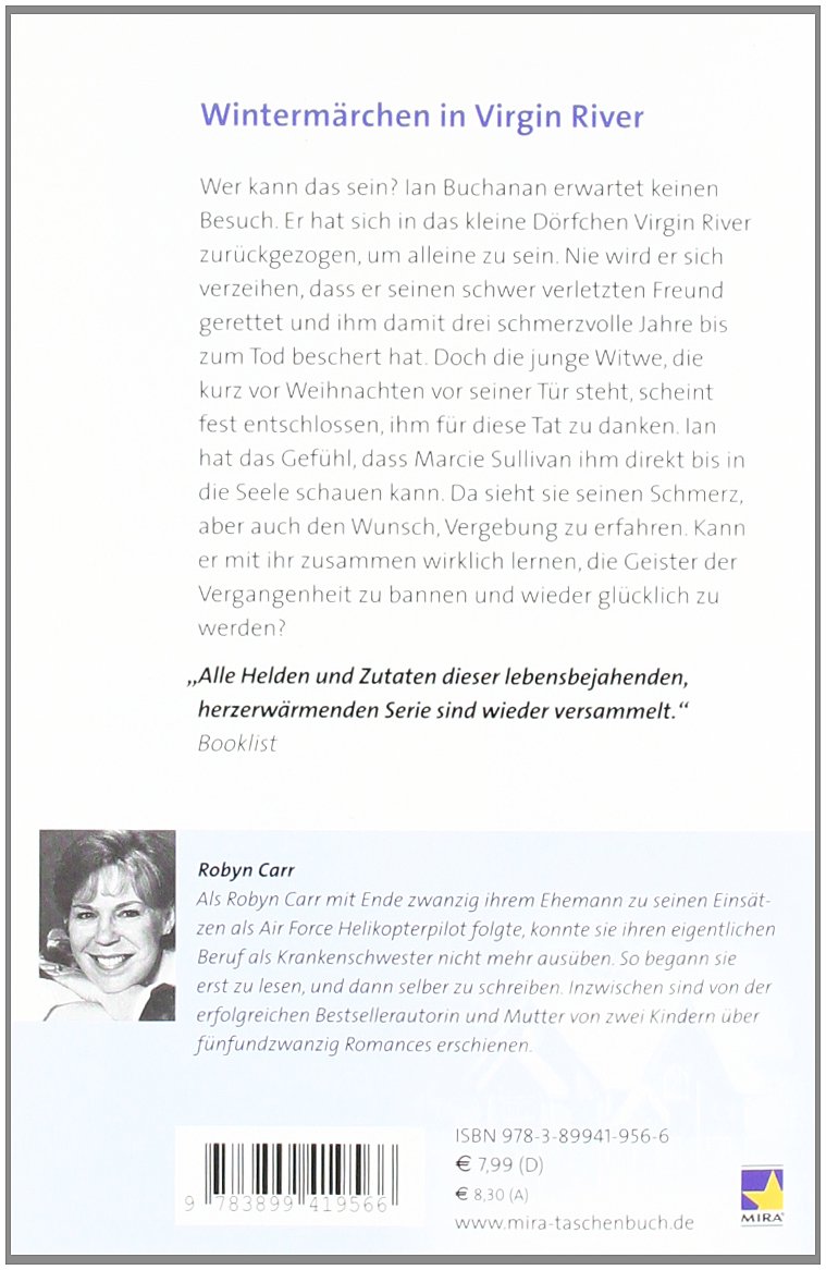 Wer kann das sein? Ian Buchanan erwartet keinen Besuch. Er hat sich in das kleine Dörfchen Virgin River zurückgezogen, um alleine zu sein. Nie wird er sich verzeihen, dass er seinen schwerverletzten Freund gerettet und ihm damit drei schmerzvolle Jahre bis zum Tod beschert hat. Doch die junge Witwe, die kurz vor Weihnachten vor seiner Tür steht, scheint fest entschlossen, ihm für diese Tat zu danken. Ian hat das Gefühl, dass Marci Sullivan ihm direkt bis in die Seele schauen kann. Da sieht sie seinen Schmerz, aber auch den Wunsch, Vergebung zu erfahren. Kann er mit ihr zusammen wirklich lernen, die Geister der Vergangenheit zu bannen und wieder glücklich zu werden?