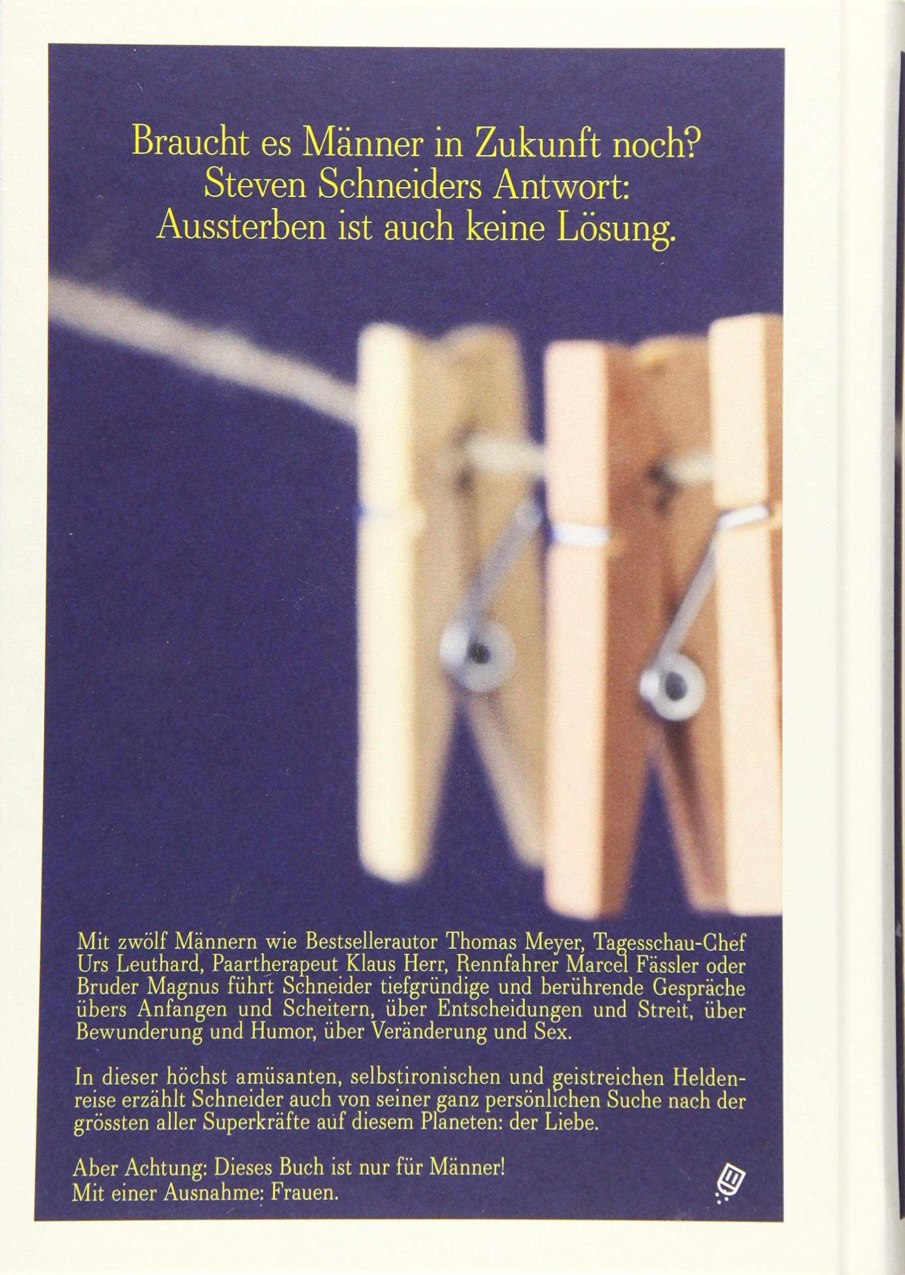 In seinem Buch, das eine höchst amüsante, selbstironische, gnadenlos ehrliche und geistreiche Heldenreise ist, erzählt Steven Schneider auch von seiner ganz persönlichen Suche nach der Superkraft Liebe. Aber Achtung: Dieses Buch ist nur für Männer! Mit einer Ausnahme: Frauen. Denn sie erfahren endlich, wie das Gefühlsleben von einem Mann funktioniert: nämlich völlig anders als das von Frauen - zum Glück. Denn was wäre Yin ohne Yang? Und was ein Superheld ohne seine Superheldin?