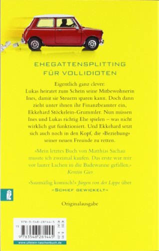 "Mein letztes Buch von Matthias Sachau musste ich zweimal kaufen. Das erste war mir vor lauter Lachen in die Badewanne gefallen." Kerstin Gier Eigentlich ganz clever: Lukas heiratet zum Schein seine Mitbewohnerin Ines, damit sie Steuern sparen kann. Doch dann zieht unter ihnen ihr Finanzbeamter ein; Ekkehard Stöckelein-Grummler. Nun müssen Ines und Lukas richtig Ehe spielen - was nicht wirklich gut funktioniert. Und Ekkehard setzt sich auch noch in den Kopf, die "Beziehung" seiner neuen Freunde zu retten.