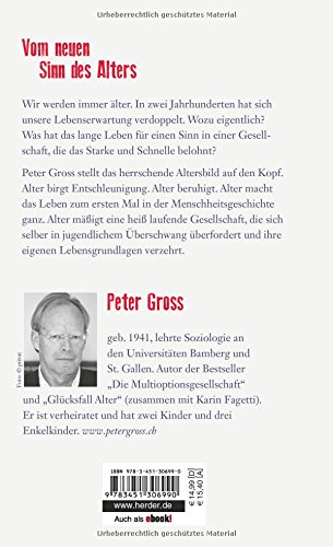 Wir werden immer älter. In zwei Jahrhunderten hat sich unsere Lebenserwartung verdoppelt. Wozu eigentlich? Was hat das lange Leben für einen Sinn in einer Gesellschaft, die das Starke prämiiert? Peter Gross stellt das herrschende Altersbild auf den Kopf. Alter beruhigt. Alter macht das Leben zum ersten Mal in der Menschheitsgeschichte ganz. Und es mässigt eine heiss laufende Gesellschaft, die sich selber überfordert und ihre Lebensgrundlagen verzehrt.