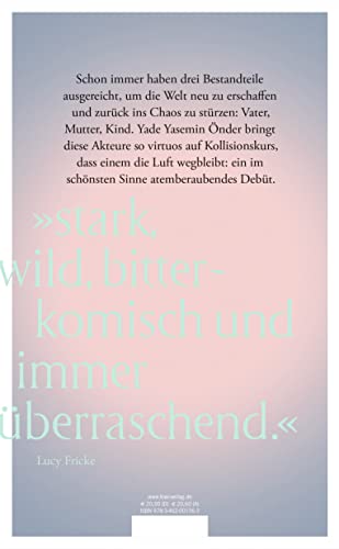 Schon immer haben drei Bestandteile ausgereicht, um die Welt neu zu erschaffen und zurück ins Chaos zu stürzen: Vater, Mutter, Kind. Yade Yasemin Önder bringt diese Akteure so virtuos auf Kollisionskurs, dass einem die Luft wegbleibt: ein im schönsten Sinne atemberaubendes Debüt.