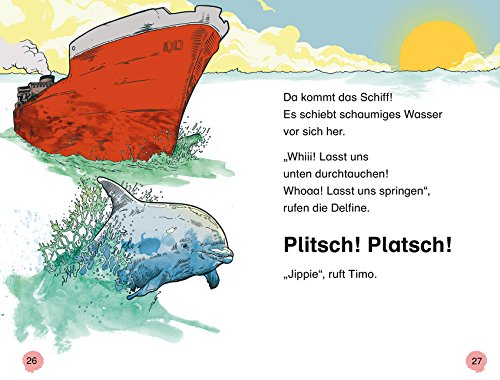 Der kleine Delfin Timo spielt gern mit seinen Freunden. Sie tauchen und springen und haben viel Spass miteinander. Doch eines Tages schwimmt Timo zu weit davon. Die Leser begleiten ihn auf seinem Abenteuer und erfahren dabei Wissenswertes über Delfine.