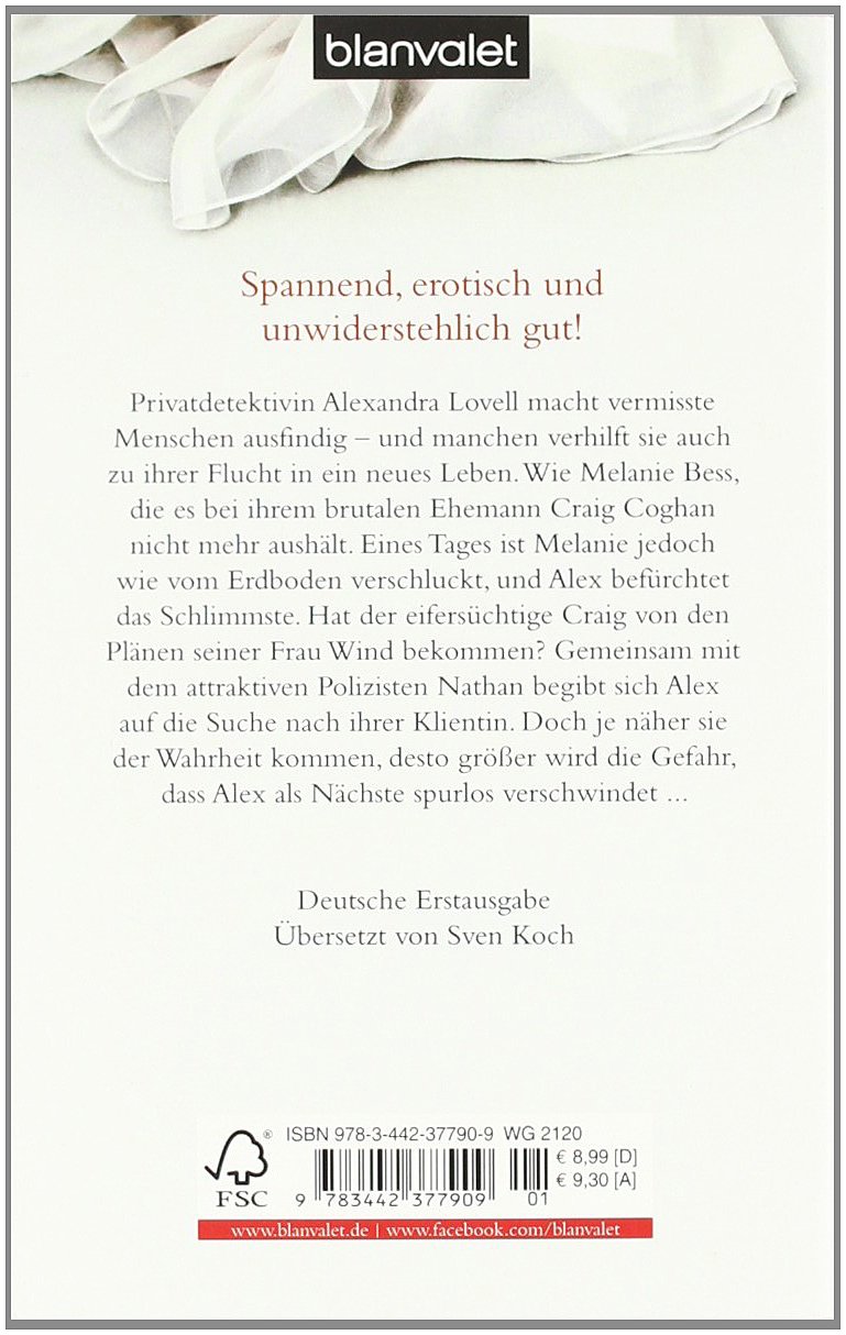 Privatdetektivin Alexandra Lovell macht verschwundene Menschen ausfindig - und manchen hilft sie dabei unterzutauchen. Der letzteren Kategorie gehört Melanie Bess an: Sie hält es bei ihrem brutalen Mann Craig Coghan nicht mehr aus. Er verfolgt sie auf Schritt und Tritt. Gemeinsam mit Alex plant sie die Einzelheiten ihrer Flucht in ein neues Leben. Doch eines Tages ist sie selbst für Alex nicht mehr erreichbar und wie vom Erdboden verschluckt. Hat der gewalttätige und eifersüchtige Craig von Melanies Plänen Wind bekommen?