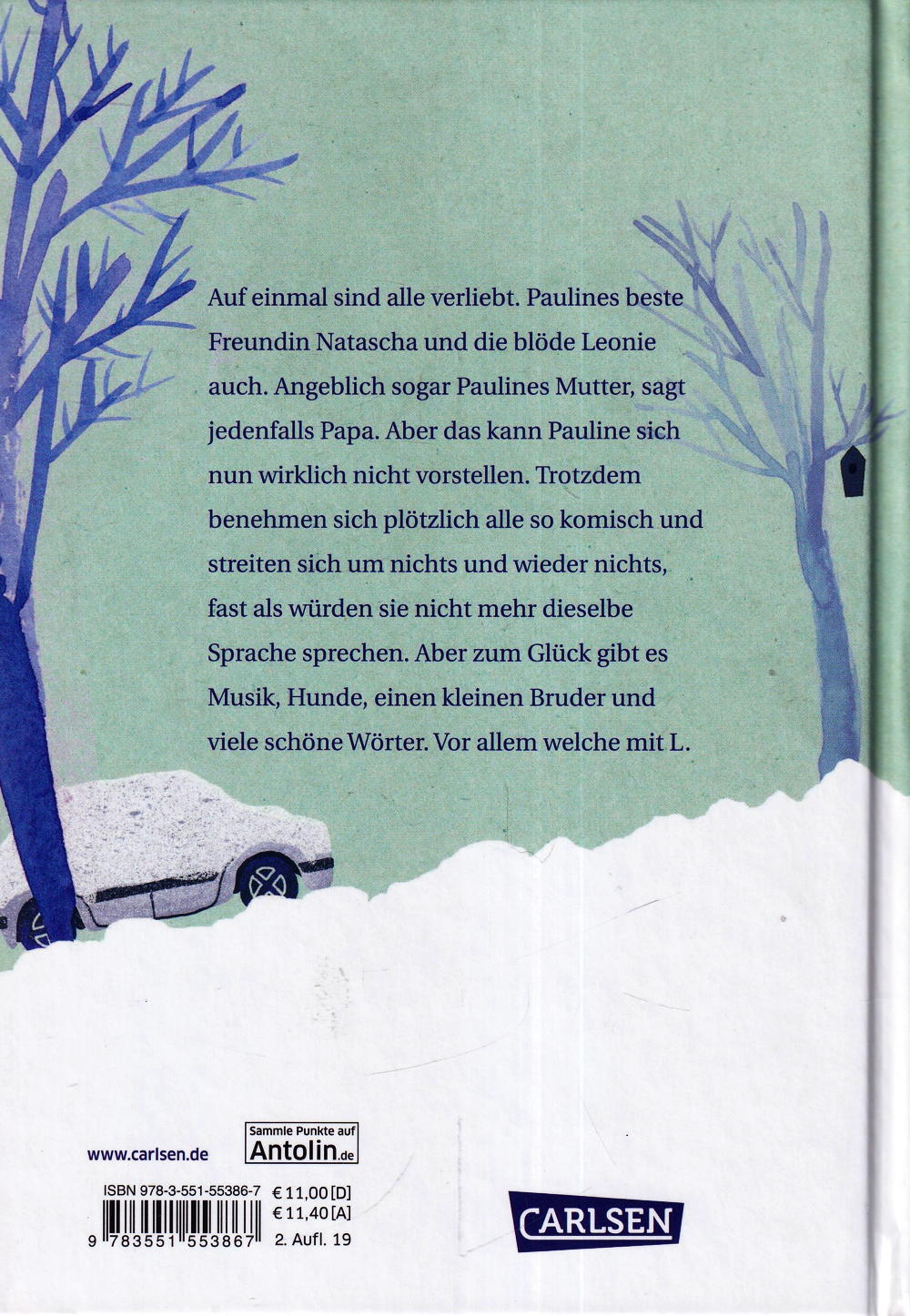 Auf einmal sind alle verliebt. Paulines beste Freundin Natascha und die blöde Leonie auch. Angeblich sogar Paulines Mutter. Aber das kann Pauline sich nun wirklich nicht vorstellen. Trotzdem benehmen sich plötzlich alle so komisch und streiten sich um nichts und wieder nichts, fast als würden sie nicht mehr dieselbe Sprache sprechen. Aber zum Glück sind da Lukas und sein dreibeiniger Hund. Vielleicht wissen die noch, wie man einfach nur einen Schneemann baut.