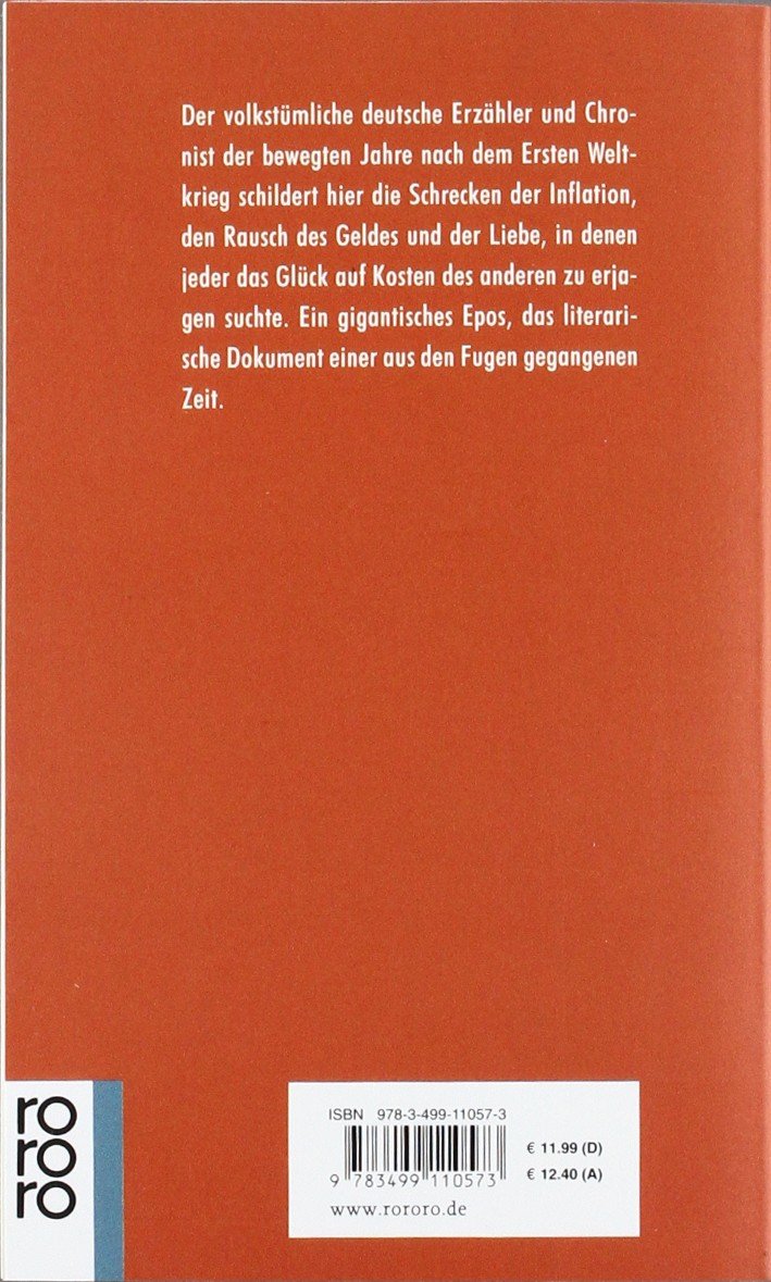 Der volkstümliche deutsche Erzähler und Chronist der bewegten Jahre nach dem Ersten Weltkrieg schildert hier die Schrecken der Inflation, den Rausch des Geldes und der Liebe, in denen jeder das Glück auf Kosten der Anderen zu erjagen sucht. Ein gigantischer Epos, das literarische Dokument, einer aus den Fugen geratenen Zeit.