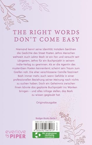 Lektor Bash kämpft im Indie-Verlag Badger Books zwischen Manuskriptstapeln und Verlagsdruck für seine Herzensprojekte. Als er die verschlossene Agentin Camille kennenlernt, steht Bash plötzlich vor einem unerwarteten Gefühlschaos, denn trotz der professionellen Distanz zieht Camille ihn magisch an. Während sie gemeinsam an einem aufregenden Buchprojekt arbeiten, entwickeln sich zarte Gefühle zwischen den beiden. Doch eine unerwartete Enthüllung stellt Bash vor eine schwierige Entscheidung. Können die beiden den Mut aufbringen, ihre Differenzen zu überwinden und die Liebe zuzulassen?