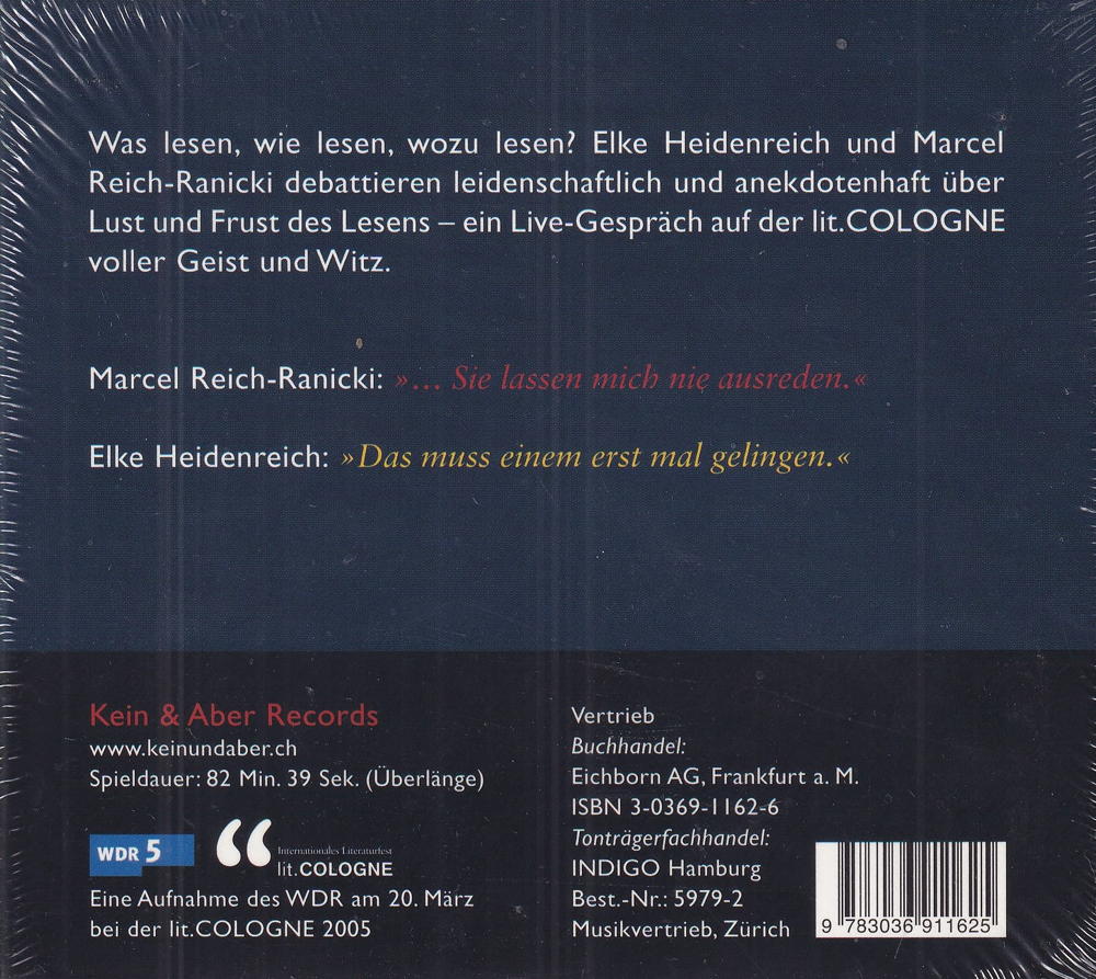 Was lesen, wie lesen, wozu lesen? Elke Heidenreich und Marcel Reich-Ranicki debattieren leidenschaftlich und anekdotenhaft über Lust und Frust des Lesens - ein Live-Gespräch auf der lit. COLOGNE voller Geist und Witz.