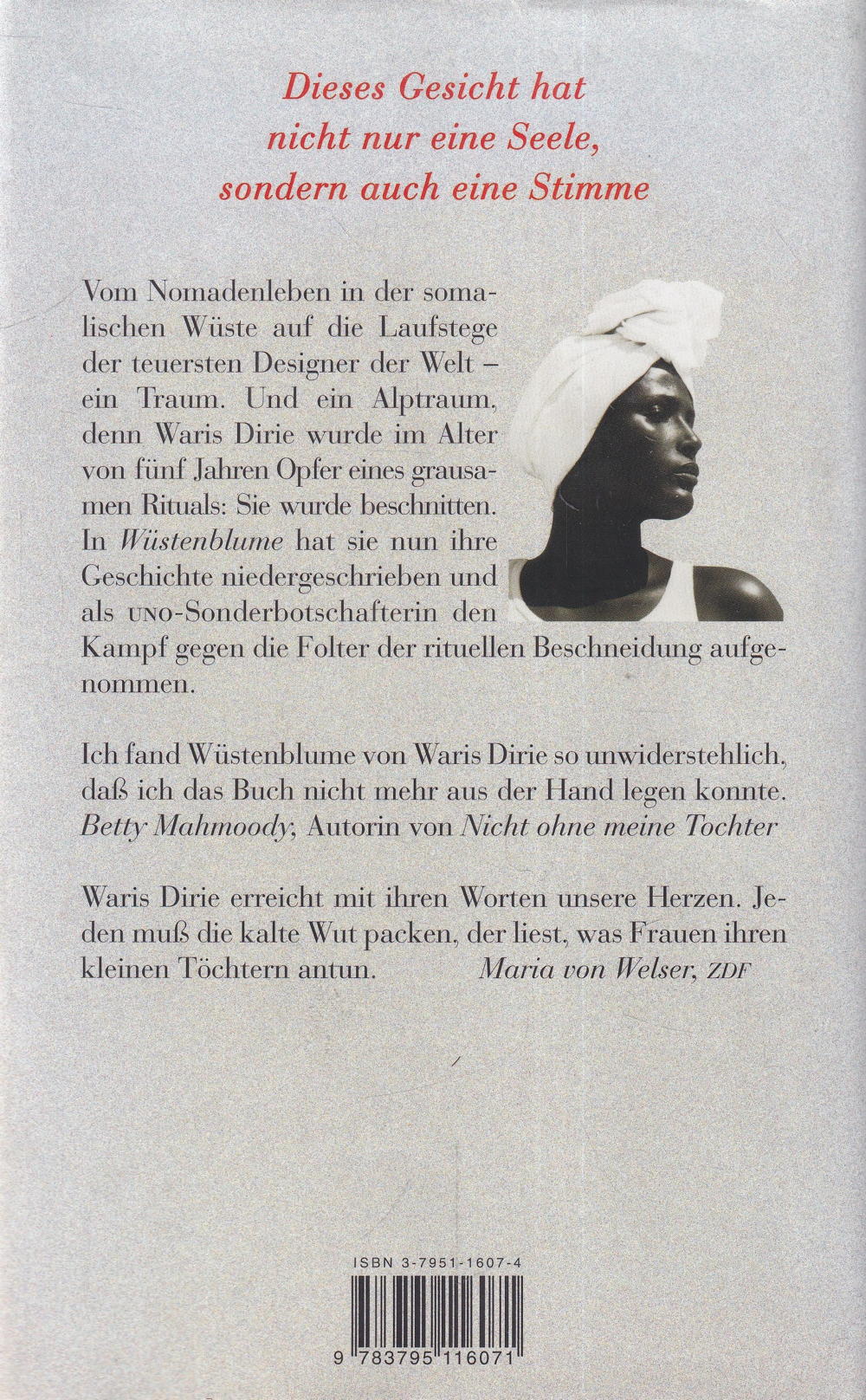 Vom Nomadenleben in der somalischen Wüste auf die Laufstege der teuersten Designer der Welt ein Traum. Und ein Alptraum, denn Waris Dirie wurde im Alter von fünf Jahren Opfer eines grausamen Rituals: Sie wurde beschnitten.