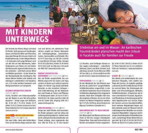 Insider-Tipps und noch viel mehr: Erleben Sie mit MARCO POLO Yucatán intensiv von den Stränden an der Riviera Maya bis zu den Pyramiden der Maya im Urwald - mit dem MARCO POLO Reiseführer kommen Sie sofort in Yucatán an. Erfahren Sie, welche Highlights Sie neben Chichén Itzá, der berühmtesten der archäologischen Stätten, und den Seekühen, Jaguaren und Krokodilen im Biosphärenreservat Sian Ka'an nicht verpassen dürfen, wo der gesprächige Engländer Richie seine künstliche Insel aus sagenhaften 100 000 Plastikflaschen konstruiert hat und dass Sie das spannendste Tauchvergnügen nicht im Meer, sondern in einer der vielen gefluteten Karsthöhlen wie Dos Ojos bei Akumal erleben. Mit den MARCO POLO Ausflügen und Touren erkunden Sie Yucatán auf besonderen Wegen und mit den Low-Budget-Tipps sparen Sie bares Geld. Die Insider-Tipps des Autors lassen Sie Yucatán individuell und authentisch erleben. In jedem Band gibt es einen übersichtlichen Reiseatlas und eine herausnehmbare Faltkarte, in die natürlich auch die Ausflüge & Touren eingetragen sind. Entdecken Sie Yucatán mit all seinen Facetten! Der kompakte, unkomplizierte und übersichtlich strukturierte MARCO POLO Reiseführer bringt Sie mitten rein in die Region, versorgt Sie mit brandaktuellen Informationen und jeder Menge Insider-Tipps für einen spannenden Mexikotrip.
