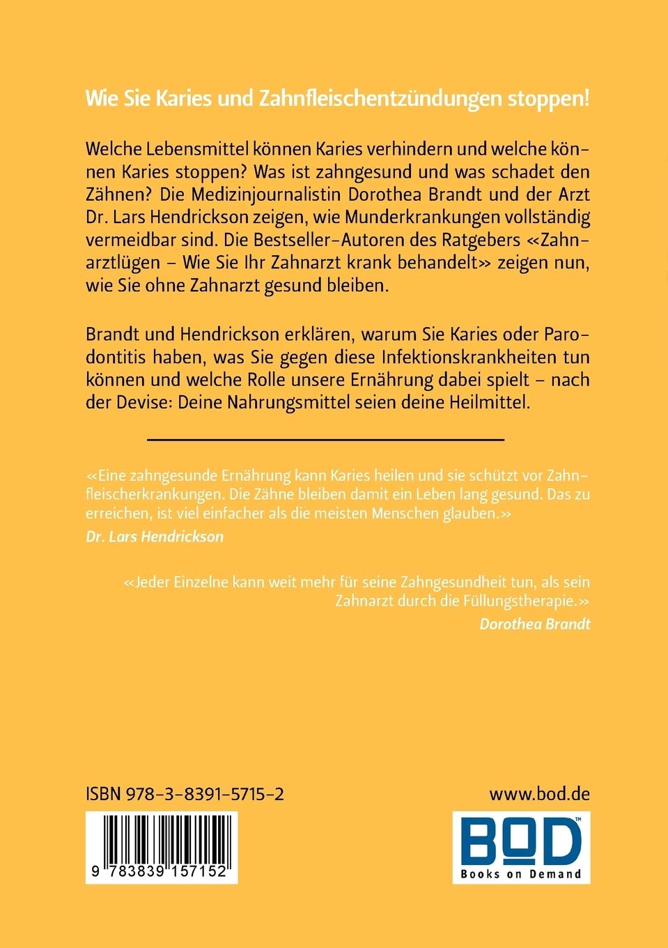"Eine zahngesunde Ernährung kann Karies heilen und sie schützt vor Zahnfleischerkrankungen. Die Zähne bleiben damit ein Leben lang gesund. Das zu erreichen, ist viel einfacher als die meisten Menschen glauben." Dr. Lars Hendrickson"Jeder Einzelne kann weit mehr für seine Zahngesundheit tun, als sein Zahnarzt durch die Füllungstherapie." Dorothea Brandt Über den Autor