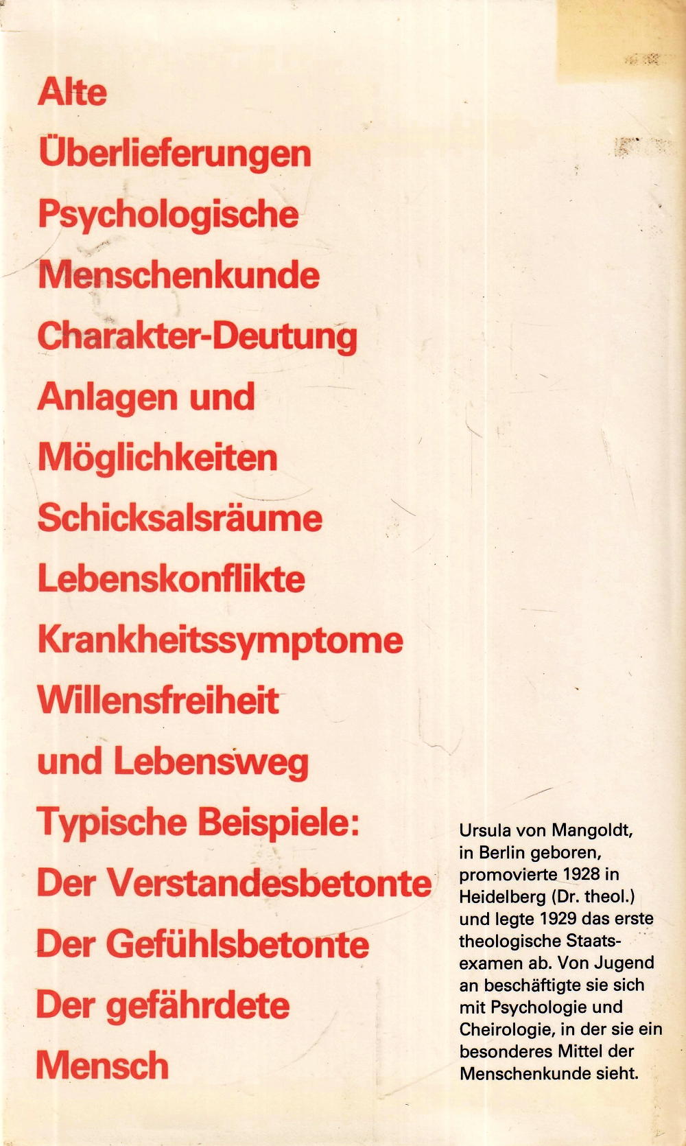 Alte Überlieferungen Psychologische Menschenkunde Charakter-Deutung Anlagen und Möglichkeiten Schicksalsräume Lebenskonflikte Krankheitssymptome Willensfreiheit und Lebensweg