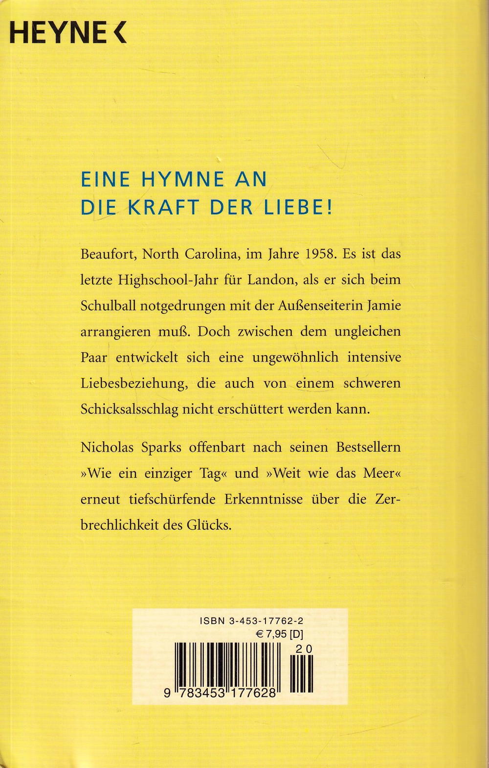 Dass der siebzehnjährige College-Student Landon Carter ausgerechnet die Tochter des bei allen Schülern verhassten Reverend Sullivan zum alljährlichen College-Ball ausführt, ist zunächst nur ein peinlicher Zufall. Doch dann kommt alles anders, und Landon verliebt sich in das Mädchen, das er bisher als braves, langweiliges Mauerblümchen betrachtet hatte. Als Jamie ihm kurz darauf ihr lang gehütetes, schreckliches Geheimnis anvertraut, ist Landon bereit, alles für sie zu tun.