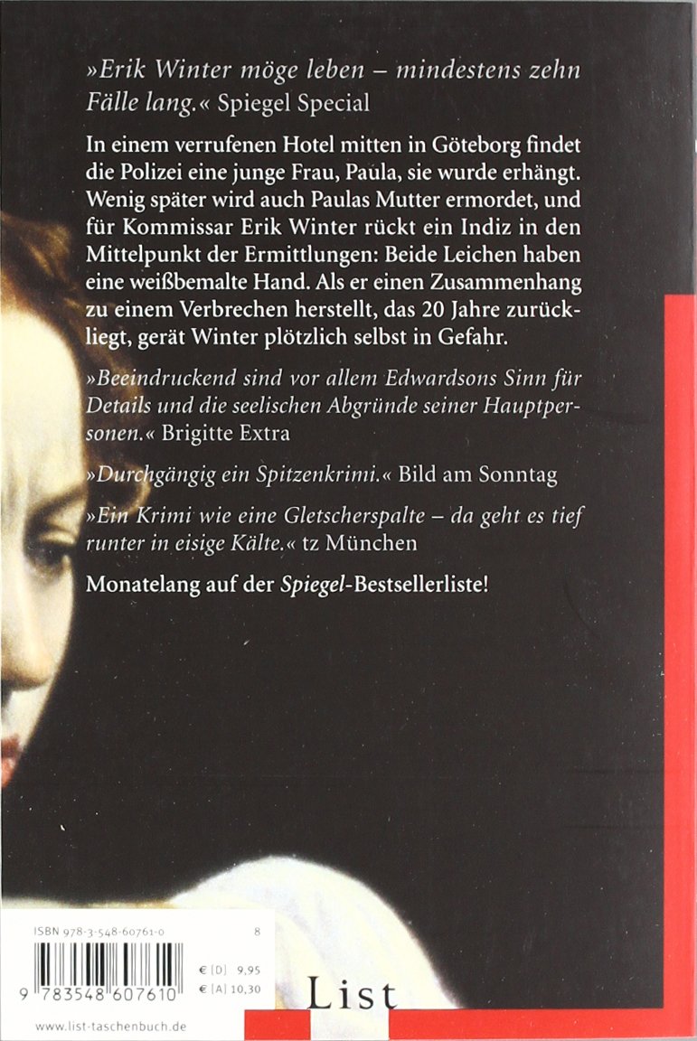 In einem verrufenen Hotel mitten in Göteborg findet die Polizei eine junge Frau, Paula, – sie wurde erhängt.Wenig später wird auch Paulas Mutter ermordet und für Kommissar Erik Winter rückt ein Indiz in den Mittelpunkt der Ermittlungen: Beide Leichen haben eine weissbemalte Hand. Als er einen Zusammenhang zu einem Verbrechen herstellt, das 20 Jahre zurückliegt, gerät Winter plötzlich selbst in Gefahr. Entdecken Sie auch das Hörbuch zu diesem Titel!
