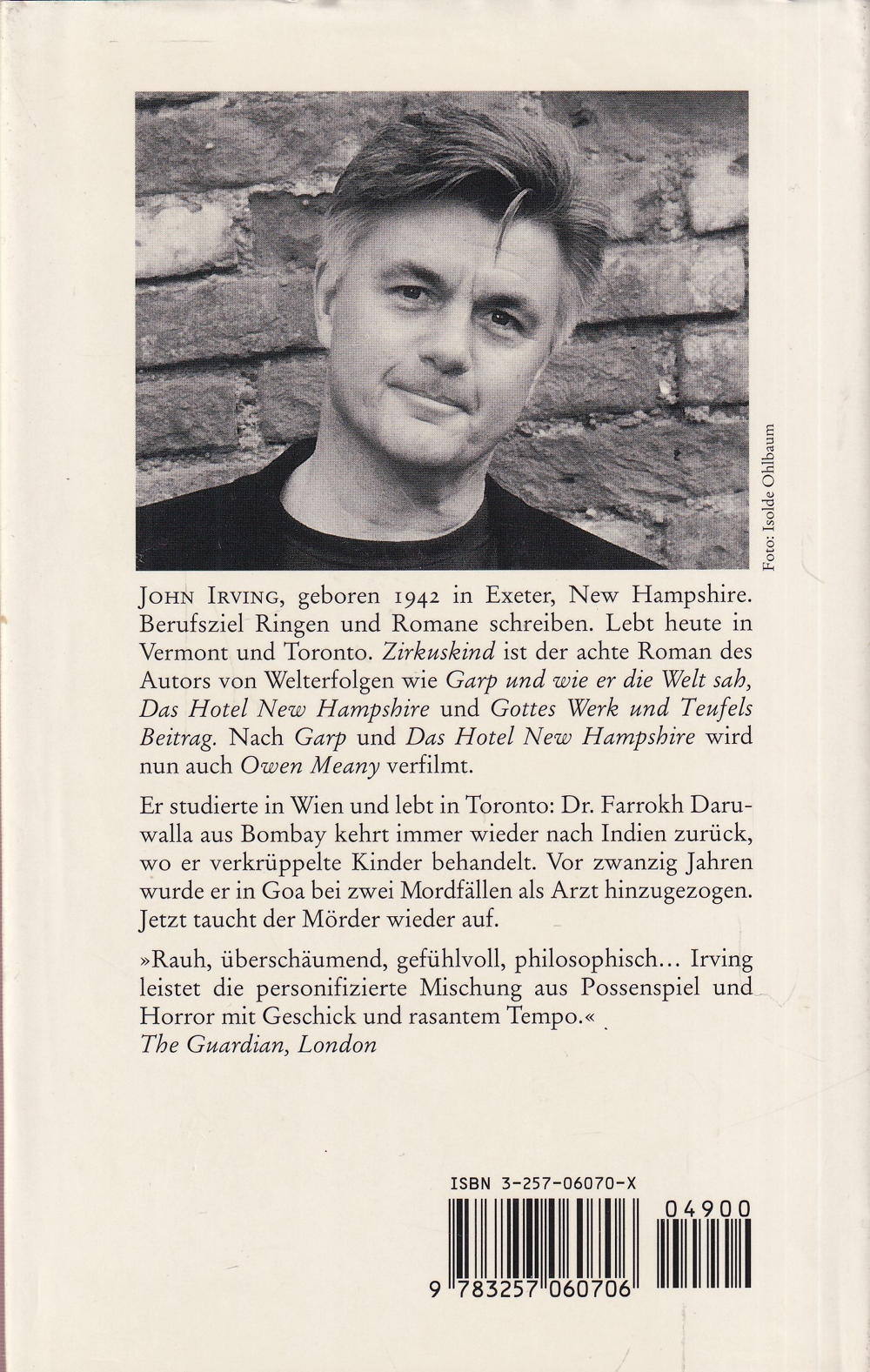 Berufsziel Ringen und Romane schreiben. Lebt heute in Vermont und Toronto. Zirkuskind ist der achte Roman des Autors von Welterfolgen wie Garp und wie er die Welt sah, Das Hotel New Hampshire und Gottes Werk und Teufels Beitrag. Nach Garp und Das Hotel New Hampshire wird nun auch Owen Meany verfilmt.