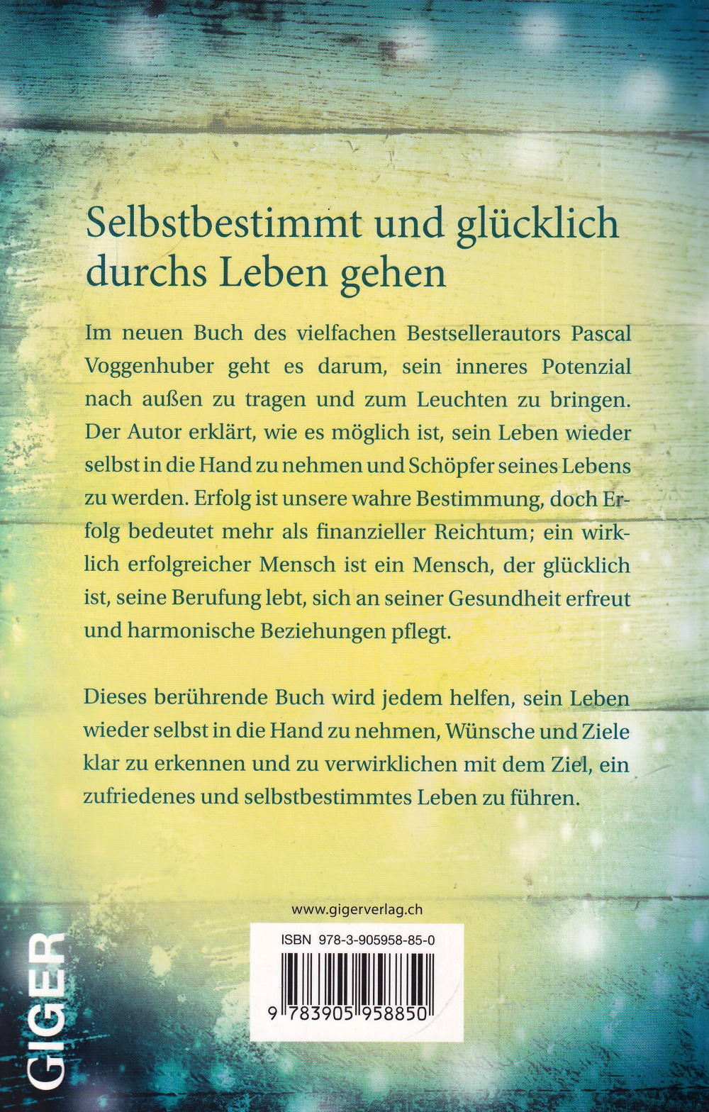 Im neuen Buch vom mehrfachen Bestsellerautor Pascal Voggenhuber geht es darum, sein inneres Potenzial zum Leuchten zu bringen. Der Autor erklärt, wie es möglich ist, sein Leben wieder selbst in die Hand zu nehmen und Schöpfer seines Lebens zu werden. Erfolg ist unsere wahre Bestimmung, doch Erfolg bedeutet mehr als finanzieller Reichtum; ein wirklich erfolgreicher Mensch ist ein Mensch der glücklich ist, seine Berufung lebt, sich an Gesundheit erfreut und harmonische Beziehungen pflegt. Dieser berührende Ratgeber wird dir helfen, dein Leben wieder selbst in die Hand zu nehmen, deine Wünsche und Ziele klar zu erkennen und zu verwirklichen. Bringe dein Inneres zum Leuchten, entzünde dein Licht und du wirst lernen, ein zufriedenes und selbst bestimmtes Leben zu führen.