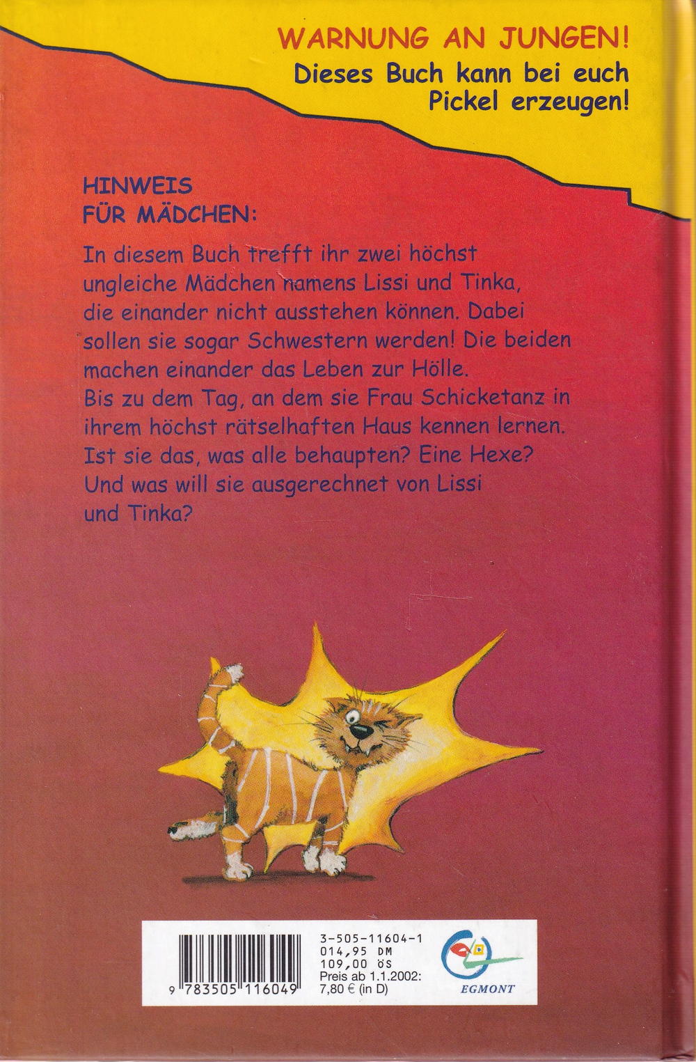 In diesem Buch trefft ihr zwei höchst ungleiche Mädchen namens Lissi und Tinka, die sich nicht ausstehen können. Dabei sollen sie sogar Schwestern werden! Die beiden machen sich das Leben zur Hölle. Bis zu dem Tag, an dem sie Frau Schicketanz in ihrem höchst rätselhaften Haus kennenlernen. Ist sie das, was alle behaupten? Eine Hexe? Und was will sie ausgerechnet von Lissi und Tinka?