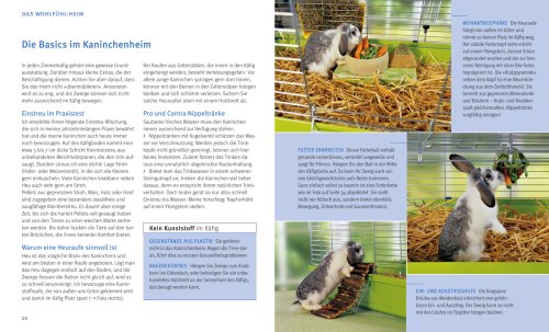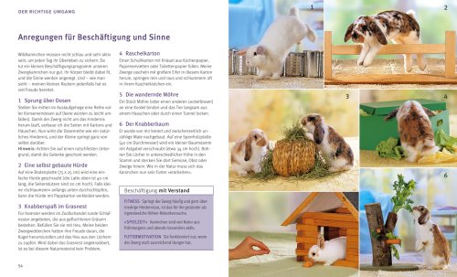 Völlig neue spezielle Text-Bild-Seiten vermitteln Wissen auf einen Blick: Welche hervorragenden Sinnesleistungen besitzt das Zwergkaninchen? Wie kann man mit einfachen Mitteln einen Abenteuerspielplatz in der Wohnung gestalten?