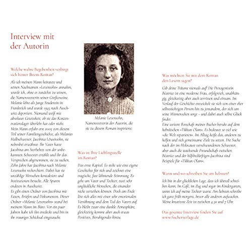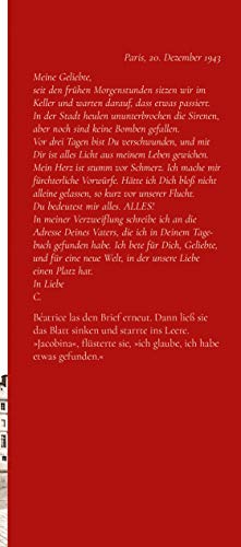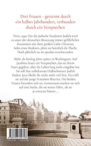 Paris, 1940: Für die jüdische Studentin Judith wird es unter der deutschen Besatzung immer gefährlicher. Zusammen mit ihrer grossen Liebe Christian, Sohn eines Bankiers, plant sie heimlich die Flucht. Doch plötzlich ist sie spurlos verschwunden. Mehr als fünfzig Jahre später in Washington: Auf Jacobina lastet ein Versprechen, das sie ihrem Vater gegeben, aber ihr Leben lang nicht eingelöst hat. Sie soll ihre unbekannte Halbschwester Judith finden. Jetzt bleibt ihr nicht mehr viel Zeit. Da trifft sie auf die junge Französin Béatrice. Die beiden Frauen freunden sich an. Gemeinsam machen sie sich auf eine Suche, die sie weiter führt, als sie je erwartet hätten …