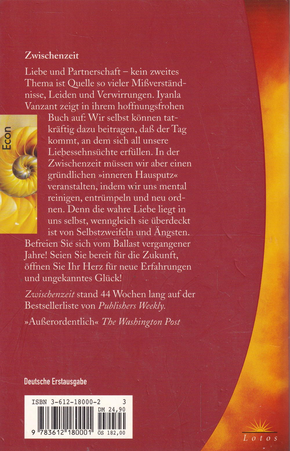 Zwischenzeit Liebe und Partnerschaft - kein zweites Thema ist Quelle so vieler Missverständnisse, Leiden und Verwirrungen. Iyanla Vanzant zeigt in ihrem hoffnungsfrohen Buch auf: Wir selbst können tatkräftig dazu beitragen, dass der Tag kommt, an dem sich all unsere Liebessehnsüchte erfüllen. In der Zwischenzeit müssen wir aber einen gründlichen »inneren Hausputz« veranstalten, indem wir uns mental reinigen, entrümpeln und neu ordnen. Denn die wahre Liebe liegt in uns selbst, wenngleich sie überdeckt ist von Selbstzweifeln und Ängsten.