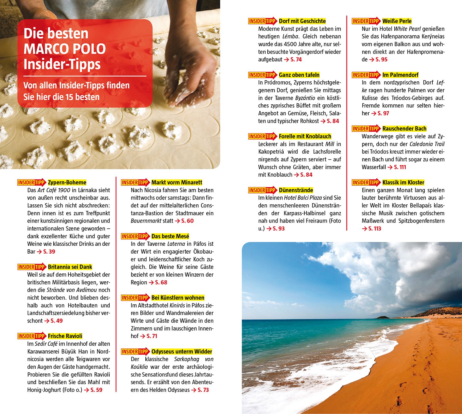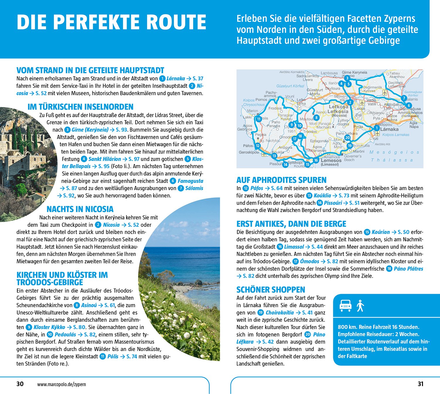 Insider-Tipps und noch viel mehr: Erleben Sie mit MARCO POLO die zauberhafte Insel im Mittelmeer intensiv von den historischen Mosaiken im antiken Stadtkönigreich Páfos bis zum fast menschenleeren Golden Beach an der Spitze der Karpass-Halbinsel, wo selbst die Meeresschildkröten in der Hochsaison noch genug Platz für ihre Eier finden. Mit dem MARCO POLO Reiseführer kommen Sie sofort in Zypern an und wissen garantiert, #wohin zuerst#. Erfahren Sie, welche Highlights Sie neben dem beliebten Fotomotiv, der Halan-Sultan-Tekke-Moschee, und dem Hafen von Kerýneia nicht verpassen dürfen, wo Sie auf einem grossen Bauernmarkt vor einem Minarett frische Produkte der Region kaufen können und dass Sie mit einer Wildbachwanderung im Tróodos-Gebirge selbst gehfaule Kinder begeistern können. Mit den MARCO POLO Ausflügen & Touren erkunden Sie Zypern auf besonderen Wegen und mit den Low-Budget-Tipps sparen Sie bares Geld. Die Insider-Tipps des Autors lassen Sie Zypern individuell und authentisch erleben. In jedem Band gibt es einen übersichtlichen Reiseatlas und eine herausnehmbare Faltkarte, in die natürlich auch die Ausflüge & Touren eingetragen sind.