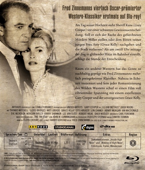 Der einsame Marshall, die intolerante Frau, die feigen Bürger, die skrupellosen Killer. Urbilder des klassischen Western. Doch Fred Zinnemann inszenierte daraus ein atemberaubendes Statement über Gewalt und Verantwortung, wie es Hollywood noch nie gesehen hatte: Nach dem festen Gesetz des Western bleibt sein Held standhaft - doch die Angst ist ihm ins Gesicht geschrieben. Quälend langsam vergeht die Zeit, in der Marshall Kane verzweifelt Hilfe sucht. Ein zweifelnder Held, eine Frau, die ihre Ideale verrät, um ihren Mann zu retten - Zinnemann erlaubt dem Western Menschlichkeit.
