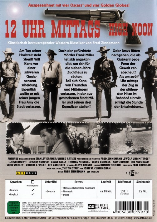 Der einsame Marshall, die intolerante Frau, die feigen Bürger, die skrupellosen Killer. Urbilder des klassischen Western. Doch Fred Zinnemann inszenierte daraus ein atemberaubendes Statement über Gewalt und Verantwortung, wie es Hollywood noch nie gesehen hatte: Nach dem festen Gesetz des Western bleibt sein Held standhaft - doch die Angst ist ihm ins Gesicht geschrieben. Quälend langsam vergeht die Zeit, in der Marshall Kane verzweifelt Hilfe sucht. Ein zweifelnder Held, eine Frau, die ihre Ideale verrät, um ihren Mann zu retten - Zinnemann erlaubt dem Western Menschlichkeit.