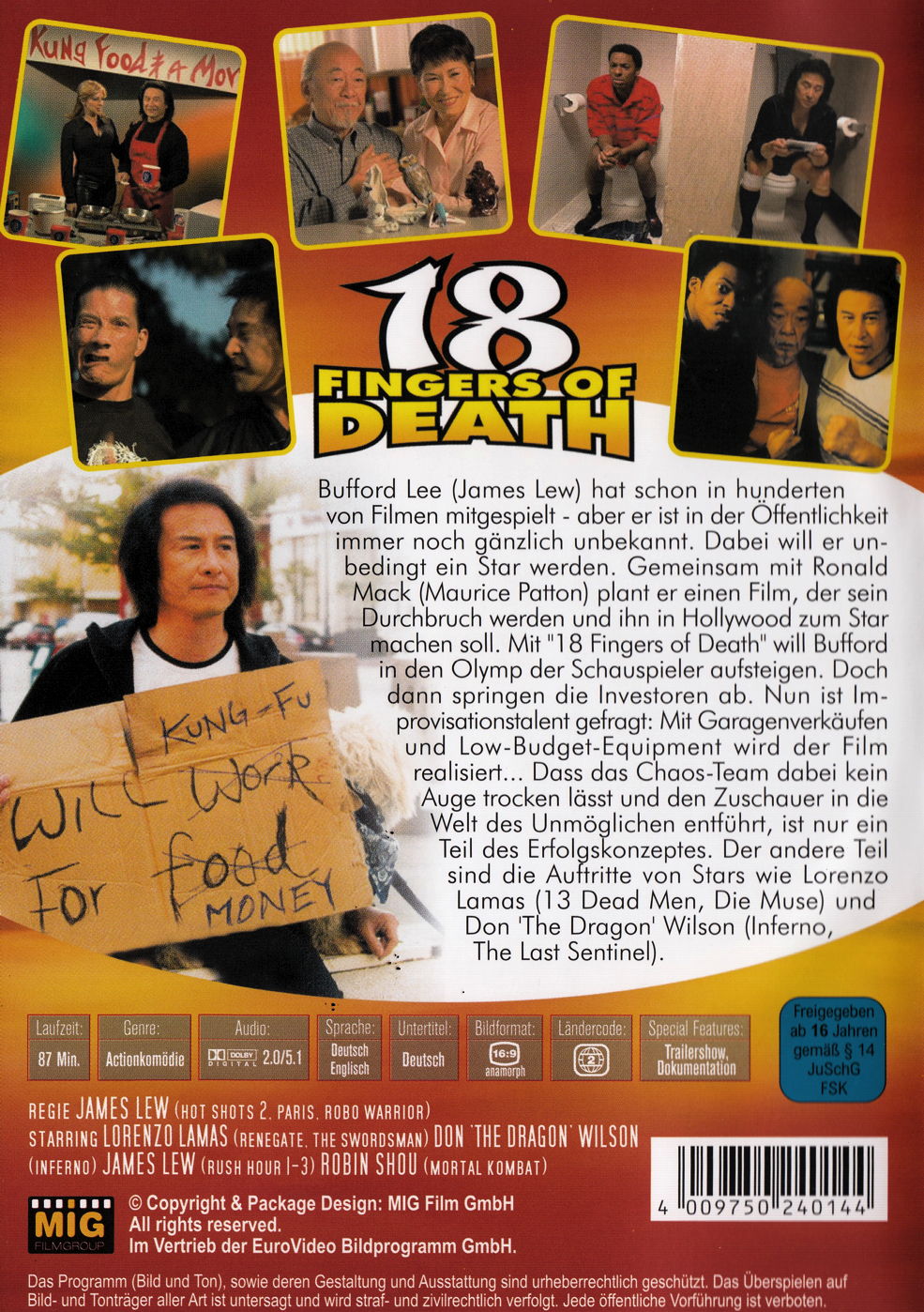 Bufford Lee (James Lew) hat schon in hunderten von Filmen mitgespielt - aber er ist in der Öffentlichkeit immer noch gänzlich unbekannt. Dabei will er unbedingt ein Star werden. Gemeinsam mit Roland Mack (Maurice Patton) plant er einen Film, der sein Durchbruch werden und ihn in Hollywood zum Star machen soll. Mit "18 Fingers of Death!" will Bufford in den Olymp der Schauspieler aufsteigen. Doch dann springen die Investoren ab. Nun ist Improvisationstalent gefragt: Mit Garagenverkäufen und Low-Budget-Equipment wird der Film realisiert... Dass das Chaos-Team dabei kein Auge trocken lässt und den Zuschauer in die Welt des Unmöglichen entführt, ist nur ein Teil des Erfolgskonzeptes. Der andre Teil sind die Auftritte von Stars wie Lorenzo Lamas (13 Dead Men, Die Muse) und Don "The Dragon" Wilson (Inferno, the Last Sentinel).
