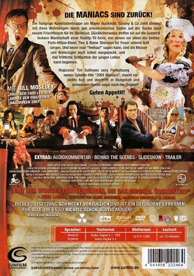 Die MANIACS sind zurück! Die hungrige Kannibalentruppe um Mayor Buckman, Granny & Co zieht diesmal mit ihren Wohnwägen durch den amerikanischen Süden auf der Suche nach neuem Frischfleisch für ihr Barbecue. Glücklicherweise treffen sie auf die äußerst leckere Mannschaft einer Reality-TV-Serie, von denen vor allem die beiden Paris-Hilton-Klone, Tina & Rome Sheraton, für Feuer unterm Grill sorgen. Und bevor man ''Yeehaa!'' sagen kann, sind die Messer und Kreissägen auch schon ausgepackt, und das fröhliche Schlachten der jungen Leiber kann beginnen.