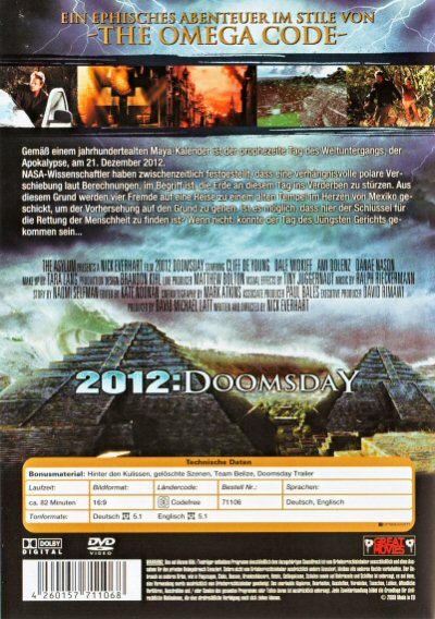 NASA-Wissenschaftler haben zwischenzeitlich festgestellt, dass eine verhängnisvolle polare Verschiebung laut Berechnungen, im Begriff ist, die Erde an diesem Tag ins Verderben zu stürzen. Aus diesem Grund werden vier Fremde auf eine Reise zu einem alten Tempel im Herzen von Mexiko geschickt, um der Vorhersehung auf den Grund zu gehen. Ist es möglich, dass hier der Schlüssel für die Rettung der Menschheit zu finden ist? Wenn nicht, könnte der Tag des Jüngsten Gerichts gekommen sein...
