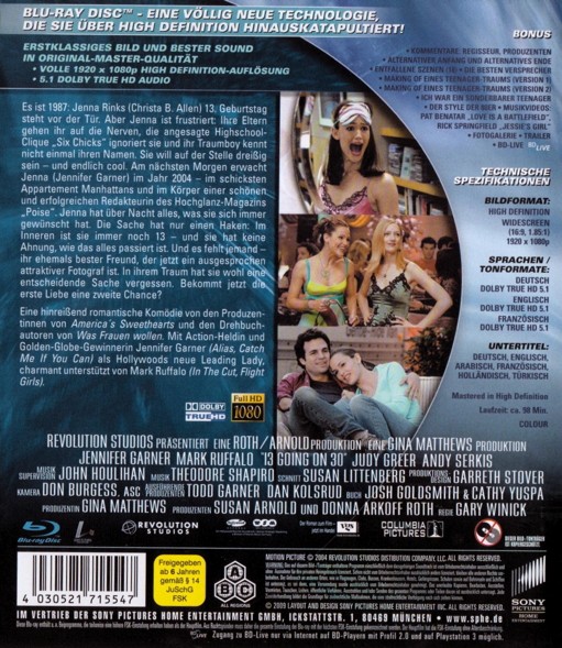 Es ist 1987: Jenna Rinks (Christa B. Allen) 13. Geburtstag steht vor der Tür. Aber Jenna ist frustriert: Ihre Eltern gehen ihr auf die Nerven, die angesagte Highschool-Clique "Six Chicks" ignoriert sie und ihr Traumboy kennt nicht einmal ihren Namen. Sie will auf der Stelle dreissig sein - und endlich cool. Am nächsten Morgen erwacht Jenna (Jennifer Garner) im Jahr 2004 - im schicksten Appartement Manhattans und im Körper einer schönen und erfolgreichen Redakteurin des Hochglanz-Magazins "Poise". Jenna hat über Nacht alles, was sie sich immer gewünscht hat. Die Sache hat nur einen Haken: Im Inneren ist sie immer noch 13 - und sie hat keine Ahnung, wie das alles passiert ist. Und es fehlt jemand - ihr ehemals bester Freund, der jetzt ein ausgesprochen attraktiver Fotograf ist. In ihrem Traum hat sie wohl eine entscheidende Sache vergessen. Bekommt jetzt die erste Liebe eine zweite Chance?