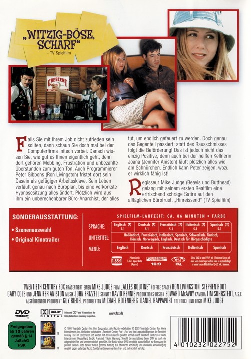 Ron Livingston, Jennifer Aniston, Ajay Naidu, David Herman, Gary Cole, Stephen Root, Richard Riehle, Alexandra Wentworth, Joe Bays, John C. McGinley...Diedrich Bader, Paul Willson, Kinna McInroe, Todd Duffey, Greg Pitts, Michael McShane, Linda Wakeman, Jos
