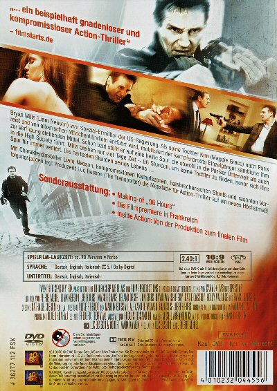 Bryan Mills (Liam Neeson) war Spezial-Ermittler der US-Regierung. Als seine Tochter Kim (Maggie Grace) nach Paris reist und von albanischen Mädchenhändlern entführt wird, mobilisiert der kampferprobte Einzelgänger sämtliche ihm zur Verfügung stehenden Mittel. Schon bald stösst er auf eine heisse Spur, die sowohl in die Pariser Unterwelt als auch in die High Society führt. Mills bleiben nur vier Tage Zeit - 96 Stunden, um seine Tochter zu finden, bevor sich ihre Spur für immer verliert. Die härtesten Stunden seines Lebens...