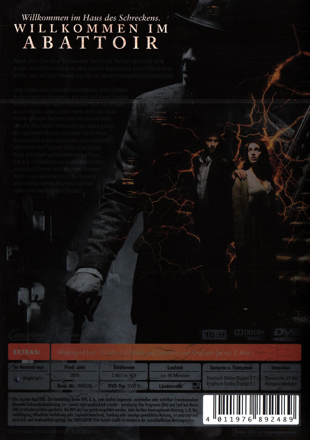 Das Leben von Immobilien-Journalistin Julia Talben ändert sich schlagartig, als ihre gesamte Familie brutal ermordet wird. Ein klarer Fall, so scheint es zunächst, aber Julia merkt schnell, dass hinter diesem Verbrechen noch viel mehr steckt. Gemeinsam mit ihrem Ex-Freund Detective Grady folgt sie einer geheimnisvollen Spur, die sie schliesslich zu einem Abattoir führt - einem Geisterhaus mit unendlich vielen Räumen, voll mit Toten und verfluchten Seelen. Schnell erkennt Julia, dass dieses Haus des Schreckens sehr viel mehr ist als nur ein Ort der Verdammten...