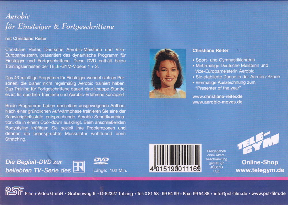 Christiane Reiter, Deutsche Aerobic-Meisterin und Vize-Europameisterin, präsentiert das dynamische Programm für Einsteiger und Fortgeschrittene. Diese DVD enthält beide Traningseinheiten der Tele-gym-Videos 1 + 2. Das 43-minütige Programm für Einsteiger wendet sich an Personen, die bisher nicht regelmässig Aerobic trainiert haben. Das Training für Fortgeschrittene dauert eine knappe Stunde, es ist für sportlich Trainierte und Aerobic-Erfahrene konzipiert. Beide Programme haben denselben ausgewogenen Aufbau: Nach einer gründlichen Aufwärmphase trainieren Sie eine der Schwierigkeitsstufe entsprechende Aerobic-Schrittkombination, die in einem Cool-down ausklingt. Beim anschliessenden Bodystyling kräftigen Sie gezielt Ihre Problemzonen und dehnen die beanspruchte Muskulatur wohltuend beim Stretching.