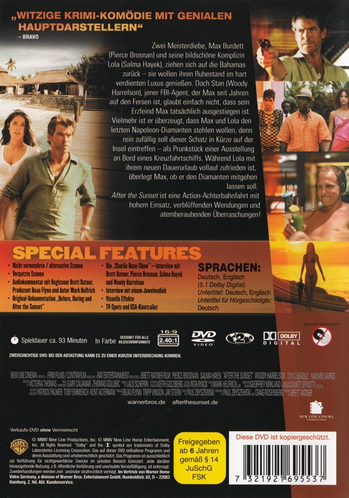 Zwei Meisterdiebe, Max Burdett und seine bildschöne Komplizin Lola, ziehen sich auf die Bahamas zurück sie wollen ihren Ruhestand im hart verdienten Luxus geniessen. Doch Stan, jener FBI-Agent, der Max seit Jahren auf den Fersen ist, glaubt einfach nicht, dass sein Erzfeind Max tatsächlich ausgestiegen ist. Vielmehr ist er überzeugt, dass Max und Lola den letzten Napoleon-Diamanten stehlen wollen, denn rein zufällig soll dieser Schatz in Kürze auf der Insel eintreffen als Prunkstück einer Ausstellung an Bord eines Kreuzfahrtschiffs. Während Lola mit ihrem neuen Dauerurlaub vollauf zufrieden ist, überlegt Max, ob er den Diamanten mitgehen lassen soll. After the Sunset ist eine Action-Achterbahnfahrt mit hohem Einsatz, verblüffenden Wendungen und atemberaubenden Überraschungen!