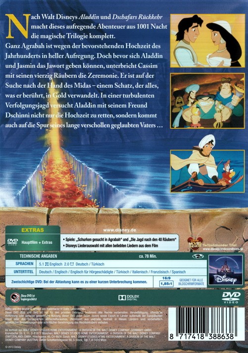Atemberaubende Spannung, jede Menge Spass und ein Schuss Romantik sowie fünf neue Songs machen "Aladdin und der König der Diebe" zu einem absoluten Muss für alle Disney-Fans. absoluten Muss für alle Disney-Fans.