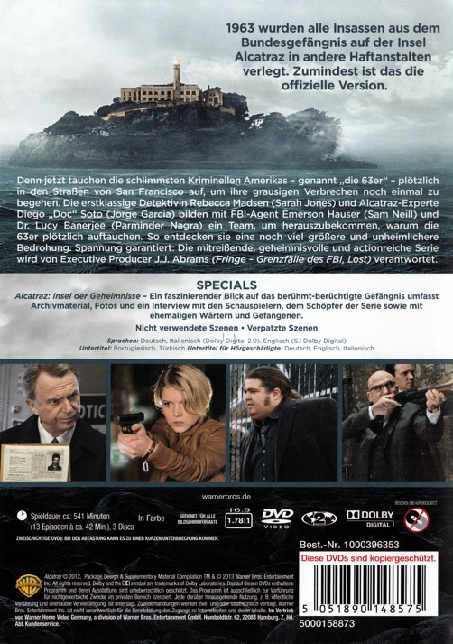 Im Jahr 1963 wurden alle Insassen der legendären Strafvollzugsanstalt Alcatraz in andere Gefängnisse überführt. So wurde es jedenfalls erzählt. Doch jetzt sind Amerikas grösste Verbrecher - bekannt als die "63" - in die Strassen San Franciscos zurückgekehrt um ihre Greueltatetn fortzufahren. Es liegt nun an der Polizistin Rebecca Madsen und dem Alcatraz-Experten Diege Soto, mit dem FBI-Agenten Emerson Hauser zusammenzuarbeiten und das Rätsel der 63 zu lösen.