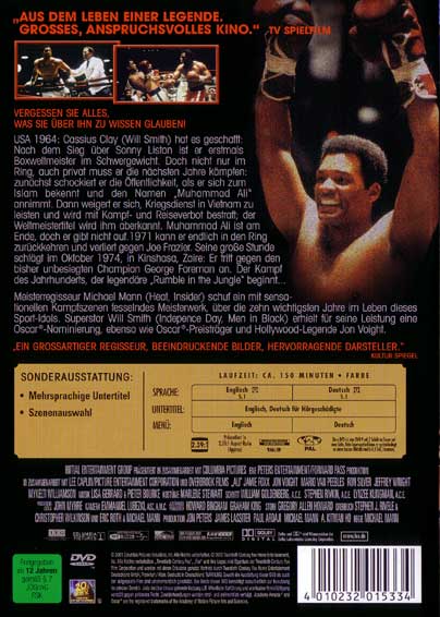 USA 1964: Cassius Clay (Will Smith) hat es geschafft: Nach dem Sieg über Sonny Liston ist er erstmals Boxweltmeister im Schwergewicht. Doch nicht nur im Ring, auch privat muss er die nächsten Jahre kämpfen: zunächst schockiert er die Öffentlichkeit, als er sich zum Islam bekennt und den Namen "Muhammad Ali" annimmt. Dann verweigert er sich, Kriegsdienst in Vietnam zu leisten und wird mit Kampf- und Reiseverbot bestraft; der Weltmeistertitel wird ihm aberkannt. Muhammad Ali ist am Ende, doch er gibt nicht auf. 1971 kann er endlich in den Ring zurückkehren und verliert gegen Joe Frazier. Seine grosse Stunde schlägt im Oktober 1974, in Kinshasa, Zaire: Er tritt gegen den bisher unbesiegten Champion George Foreman an. Der Kampf des Jahrhunderts, der legendäre "Rumble in the Jungle", beginnt.