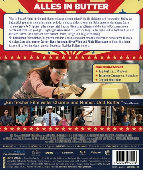 Alles in Butter? Nicht für die ambitionierte Laura, die um jeden Preis die Meisterschaft im skurrilen Hobby der Butterbildhauerei für sich entscheiden will. Gar nicht so einfach, wenn der Rekordmeister der eigene Gatte ist, eine geprellte Stripperin alles daran setzt, Lauras Pläne zu sabotieren und die ärgste Konkurrentin ein hochtalentiertes und goldiges 10-jähriges Waisenkind ist. Doch im Krieg, in der Liebe und im Wettstreit um den Titel des Butter-Champions ist alles erlaubt: Verrat, Intrige und aalglatter Betrug.