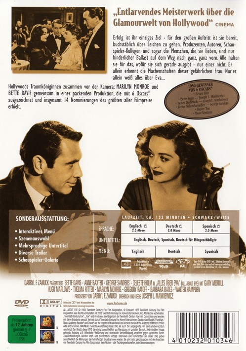 Erfolg ist ihr einziges Ziel - für den grossen Auftritt ist sie bereit, buchstäblich über Leichen zu gehen. Produzenten, Autoren, Schauspieler-Kollegen und sogar die Menschen, die sie lieben, sind nur hinderlicher Ballast auf dem Weg nach ganz, ganz vorn. Alle halten sie für das, wofür sie sich gerade ausgibt - nur einer nicht. Er allein erkennt die Machenschaften dieser gefährlichen Frau. Nur er allein weiss alles über Eva...Hollywoods Traumköniginnen zusammen vor der Kamera: Marilyn Monroe und Bette Davis, ein Film der mit 6 Oscars ausgezeichnet und insgesamt 14 Nominierungen erhielt.