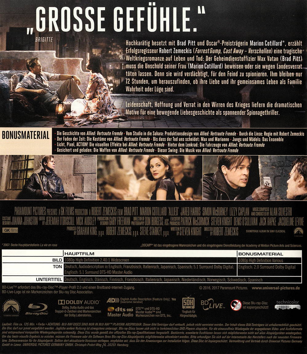 - Titel Allied - Vertraute Fremde [Blu-ray]