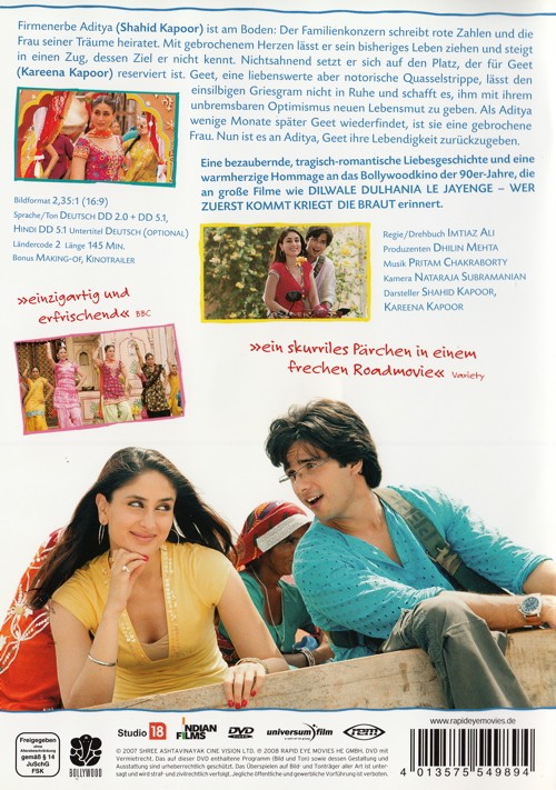 Firmenerbe Aditya (Shahid Kapoor) ist am Boden: Der Familienkonzern schreibt rote Zahlen und die Frau seiner Träume heiratet. Mit gebrochenem Herzen lässt er sein bisheriges Leben ziehen und steigt in einen Zug, dessen Ziel er nicht kennt. Nichtsahnend setzt er sich auf den Platz, der für Geet (Kareena Kapoor) reserviert ist. Geet, eine liebenswerte aber notorische Quasselstrippe, lässt den einsilbigen Griesgram nicht in Ruhe und schafft es, ihm mit ihrem unbremsbaren Optimismus neuen Lebensmut zu geben. Als Aditya wenige Monate später Geet wiederfindet, ist sie eine gebrochene Frau. Nun ist es an Aditya, Geet ihre Lebendigkeit zurückzugeben.