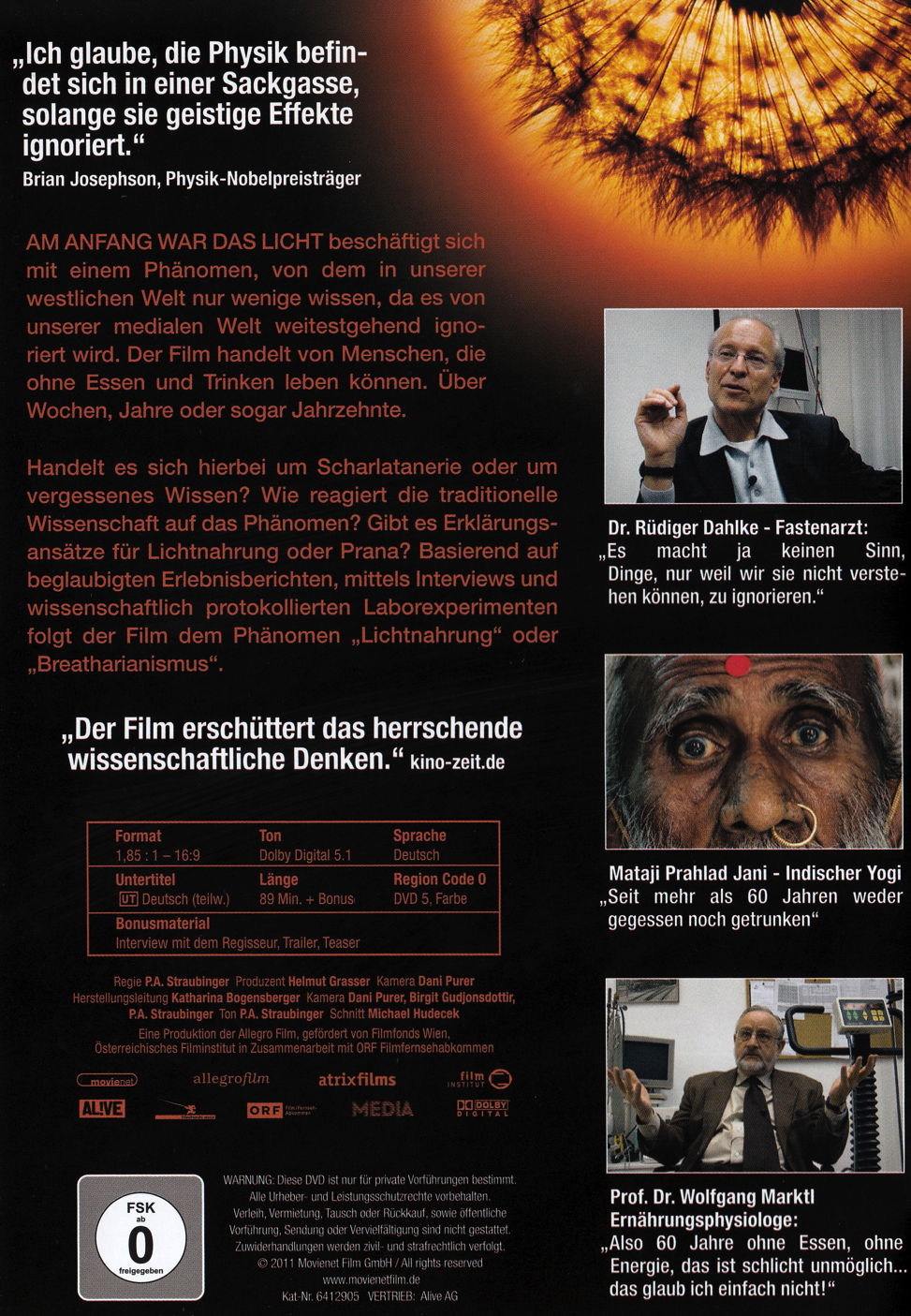 Auf der Basis von unzweifelhaften Erlebnisberichten, ausführlichen Interviews und wissenschaftlich protokollierten Laborexperimenten erzählt der Film vom Phänomen "Lichtnahrung", von der unglaublich klingenden Tatsache, dass es Menschen gibt, die keine Nahrung im klassischen Sinne brauchen. P. A. Straubinger hat sich eingehend genug mit dem Thema beschäftigt, um daran zu glauben. Ein Jünger ist er deshalb nicht. Eben so wenig wie der Regisseur davon ausgeht, dass seine Nahrung in Zukunft von der Sonne kommen wird, ebenso wenig soll sein Film die Menschen auffordern, von nun an nichts mehr zu essen. Das wäre ein grobes Missverständnis, ein gefährliches noch dazu. "Am Anfang war das Licht'" ist weder Fastenanleitung noch Lebensschule. Dafür aber ein gelungener Versuch darzustellen, dass selbst in unserer aufgeklärten westlichen Welt das Bewusstsein die Materie beeinflussen kann. Die Naturwissenschaft steht vor einem Rätsel. Und es fällt ihr offenbar unglaublich schwer, das zuzugeben.