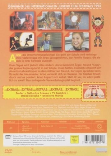 Anna, die Unternehmungslustige! Sie geht zur Schule und verbringt ihre Nachmittage mit ihren Spielgefährten, der Familie Gygax, die sie sich in ihrer Fantasie ausmalt. Eines Tages wird jedoch alles anders: Anna bekommt Ärger. Freund "Copy", der grosse Kopierapparat in der Schule, muss helfen. Heimlich schleicht sich Anna ins Lehrerzimmer zu dem stählernen Freund, der sogar sprechen kann. Da naht der Hausmeister. Anna versteckt sich im Kopierer. Ein falscher Knopfdruck und es ist passiert; Anna kopiert sich selbst. Stell Dir vor, Du wärst plötzlich zu zweit! Das aufregende Verwechslungsspiel beginnt...
