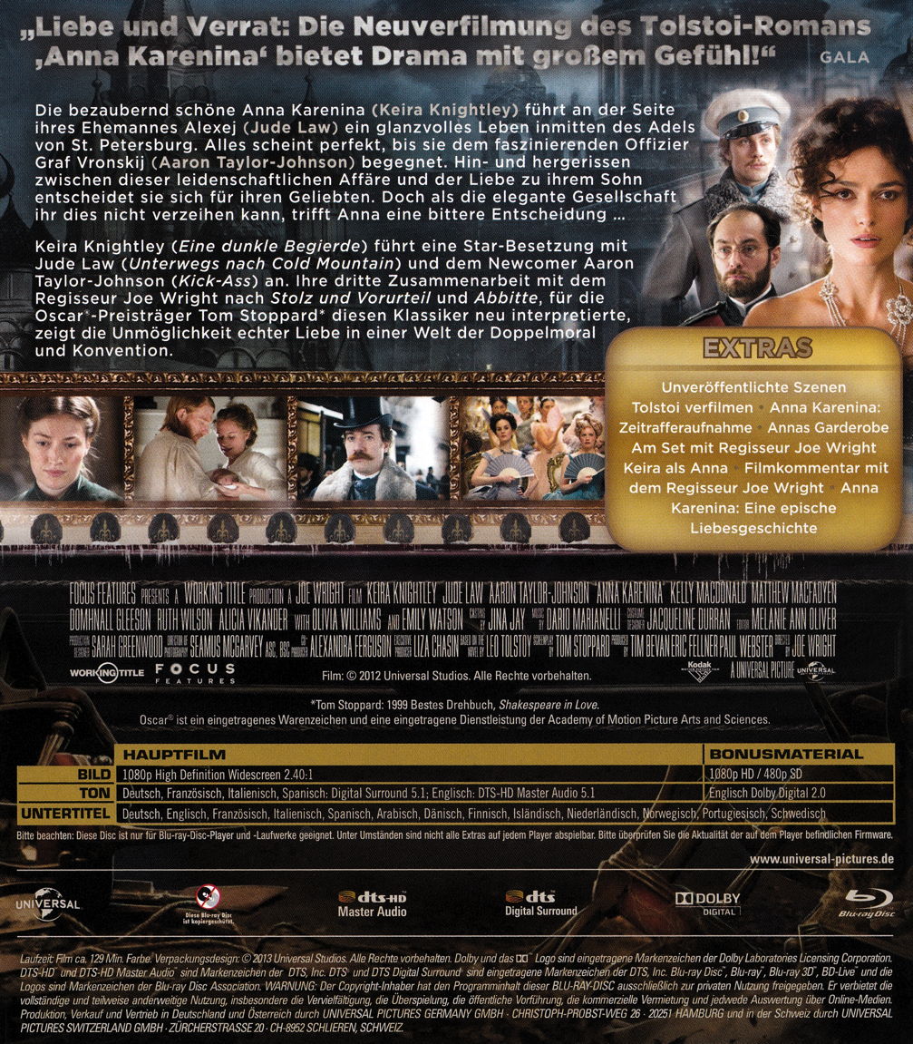 Jude Law, Keira Knightley, Matthew MacFadyen, Olivia Williams, Emily Watson, Aaron Johnson, Raphaël Personnaz, Kelly Macdonald, James Fiddy, Susanne Lothar...Holliday Grainger, Michelle Dockery, Ruth Wilson, Domhnall Gleeson, Denis Khoroshko, John Bradley, Kenneth Collard, Emerald Fennell, Alexandra Roach, Eros Vlahos, Luke Newberry, Bill Skarsgård, Alicia Vikander, Tannishtha Chatterjee, Buffy Davis, Max Bennett, Jensen Freeman, Kostas Katsikis, Nicholas Blatt, Edward Lewis French, Conor McCarry, Guro Nagelhus Schia, Kyle Soller, Telman Guzhevsky, Jude Monk McGowan, Hera Hilmar, Allegra Giagu, Sarine Sofair, Claire Greenway