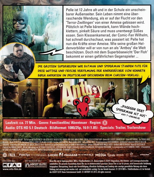 Pelle ist 12 Jahre alt und in der Schule ein unscheinbarer Aussenseiter. Sein Leben nimmt eine überraschende Wendung, als er auf der Flucht vor den "Terror-Zwillingen" von einer Ameise gebissen wird. Plötzlich ist Pelle bärenstark, kann Wände hochklettern, pinkelt Säure und muss unentwegt Süsses essen. Sein Klassenkamerad, der Comic-Fan Wilhelm, hat schnell durchschaut, was passiert ist: Pelle hat nun die Kräfte einer Ameise. Wie seine grossen Heldenvorbilder will er von nun an als "Antboy" die Welt beschützen. Doch mit dem Superbösewicht "Der Floh" bekommt er einen gefährlichen Gegenspieler...